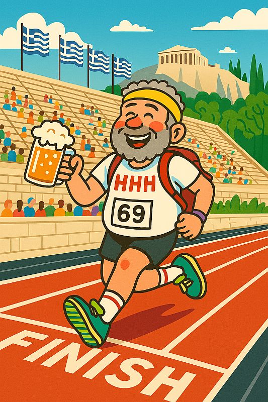 Some imbecilic brave hashers are taking part in the official ATHENS MARATHON 10k [TENDER VITTLES & MAD DOG] with official numbers and bibs and everything !!