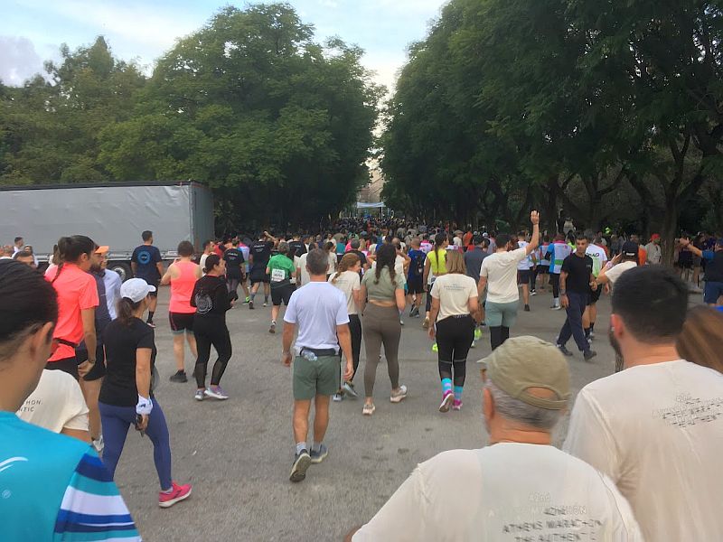 After bag drop-off, heading for the start of the race