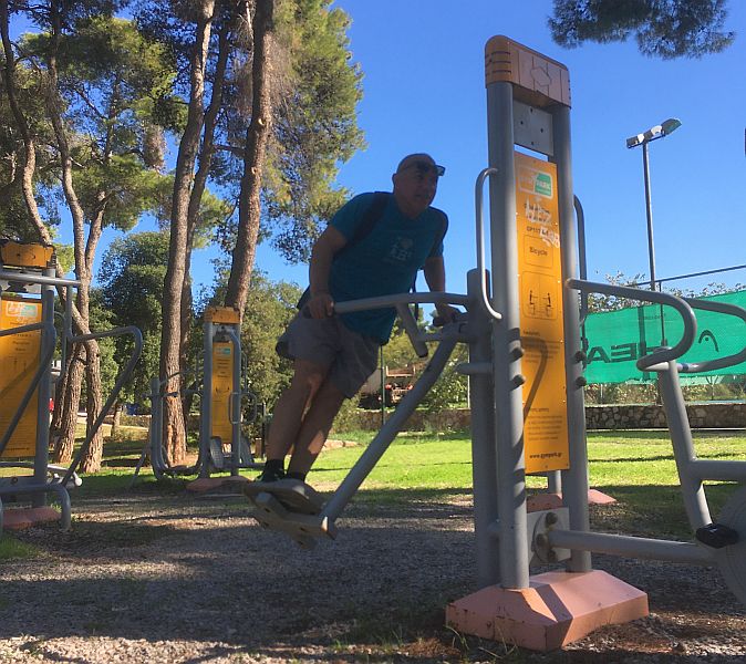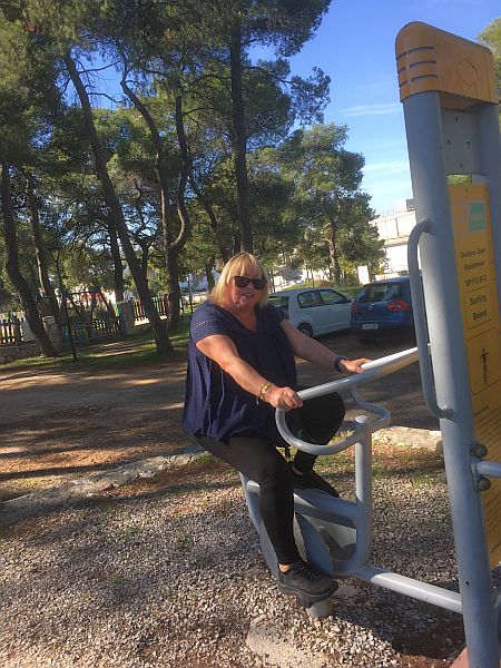 Arriving at the outdoor Gym.