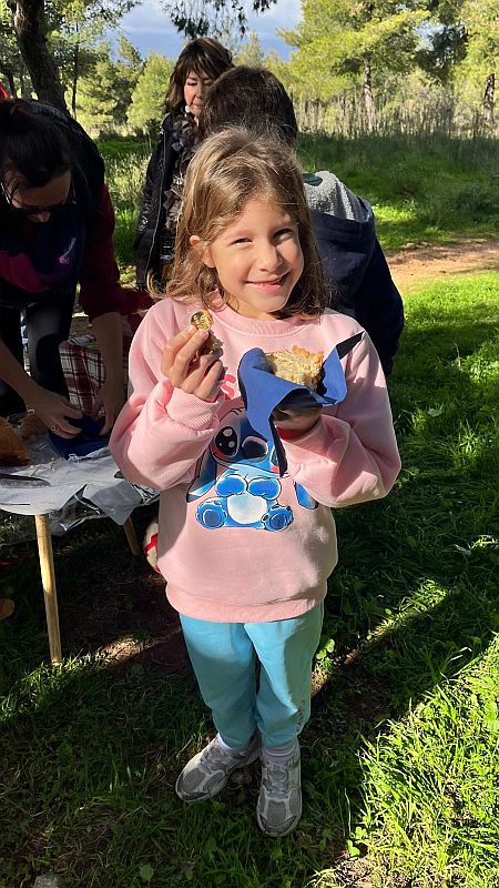 Violet finds the coin in her slice of Vassilopitta cake.