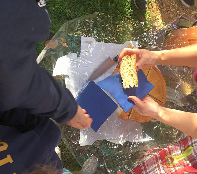 Spy Shagger hands out the slices of cake
