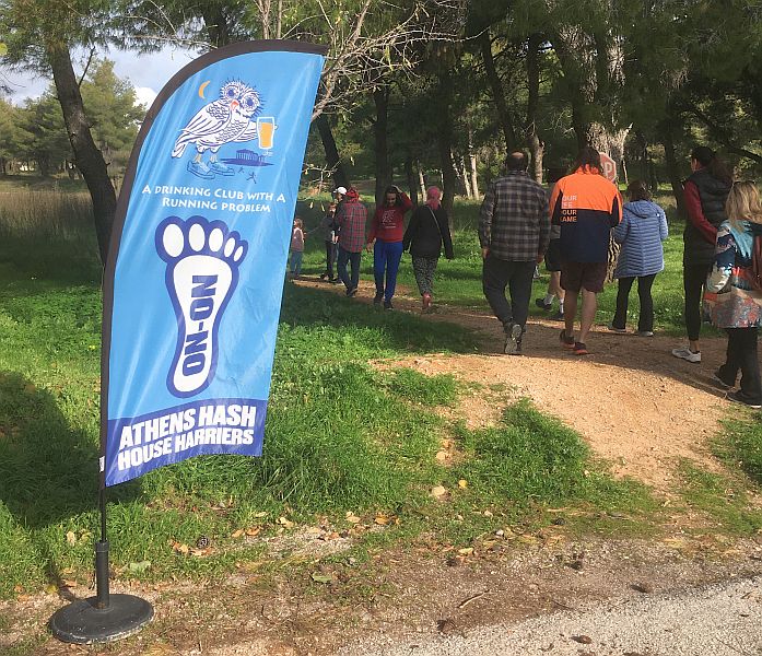 Hash starts here at the entrance to the wooded area where we park the cars.