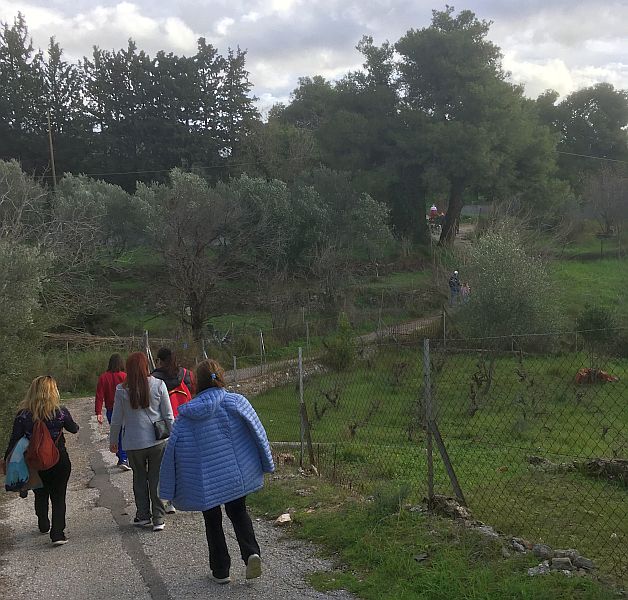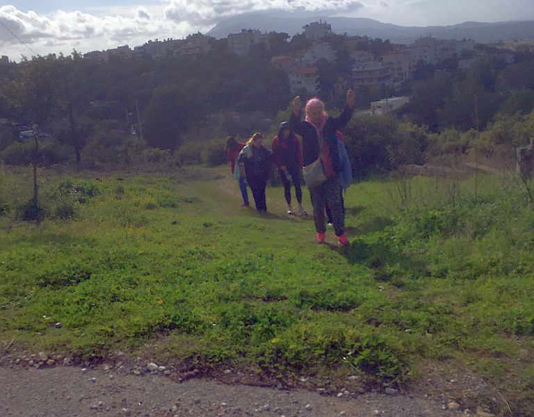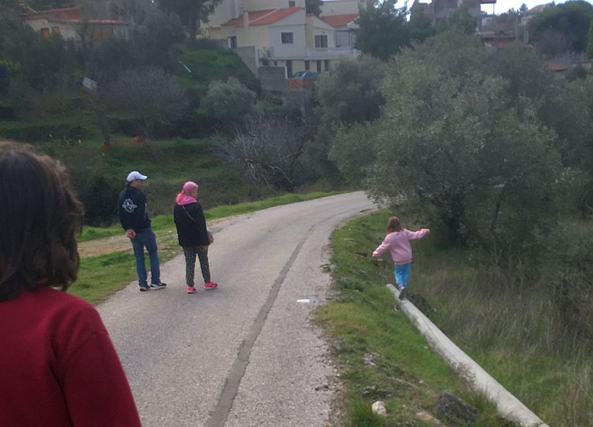 Carry on along this road; follow round the sharp left-hand turn onto Pavlos
