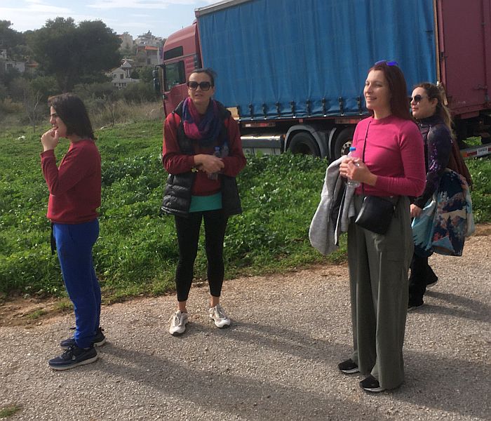 A group of 3 Feminae Spectantes look at the horses in a distant field