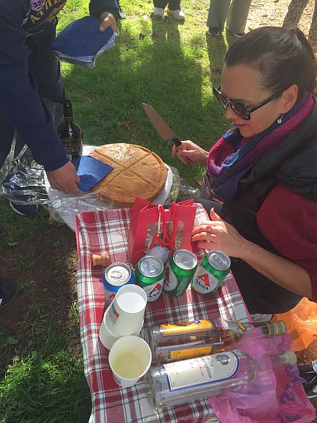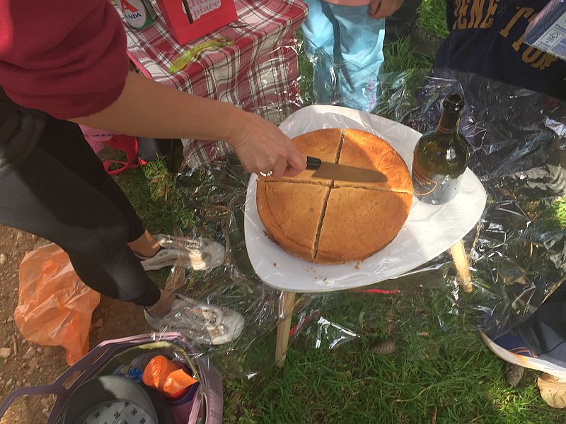 Spy Shagger hands out the slices of cake