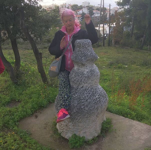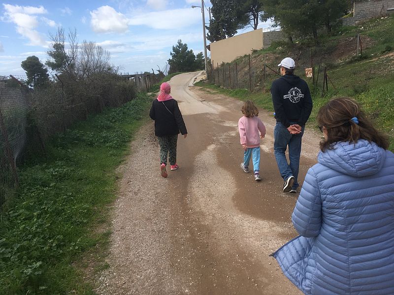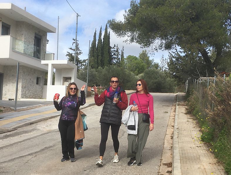 Carry on along this road; follow round the sharp left-hand turn onto Pavlos
